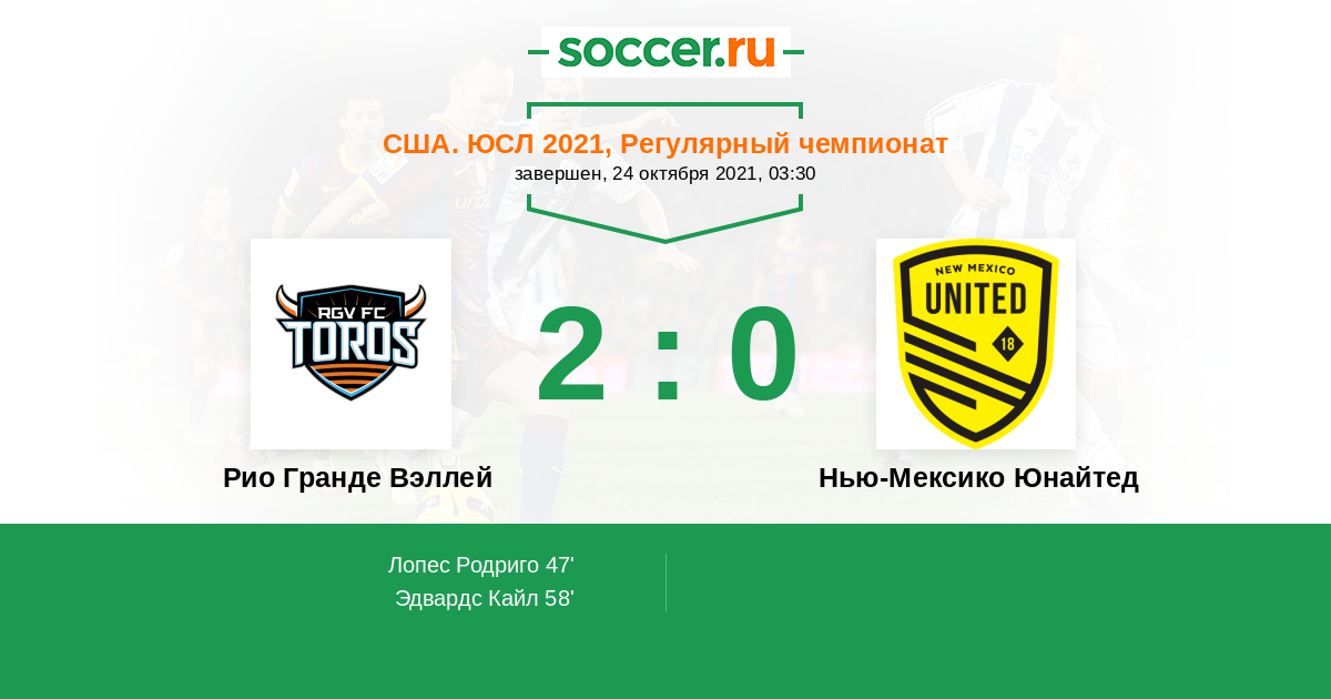 Протокол матча Рио Гранде Вэллей против Нью-Мексико Юнайтед