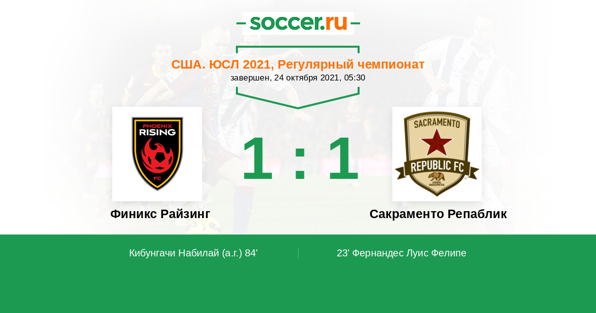 Протокол матча Финикс Райзинг против Сакраменто Репаблик