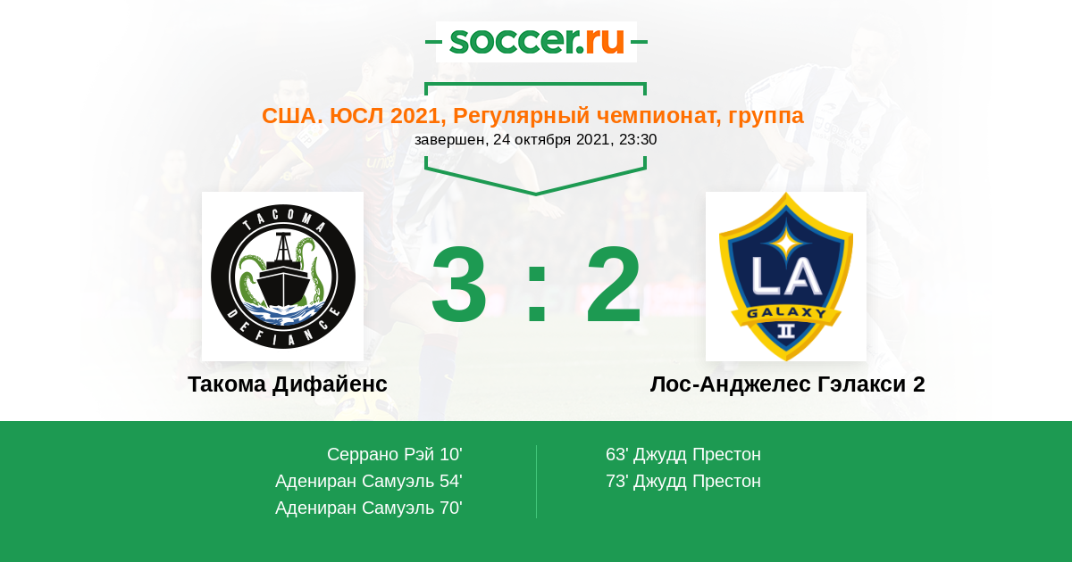 Протокол матча Такома Дифайенс против Лос-Анджелес Гэлакси 2