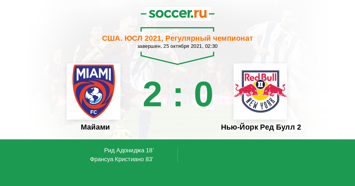 Протокол матча Майами против Нью-Йорк Ред Булл 2