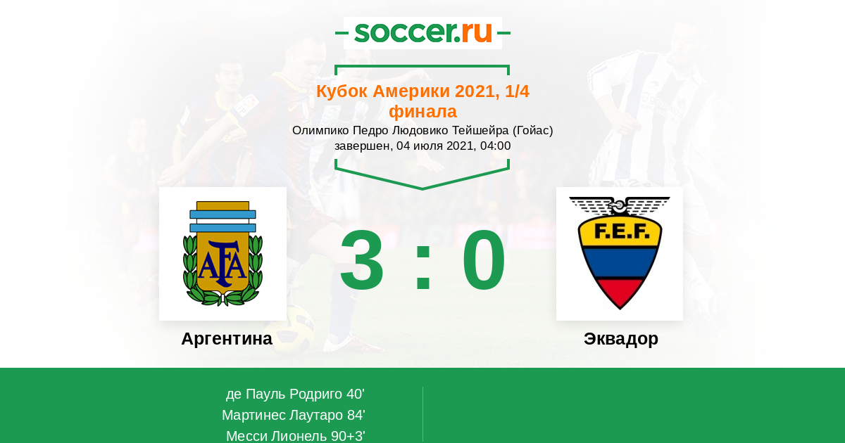 Протокол матча Аргентина против Эквадор