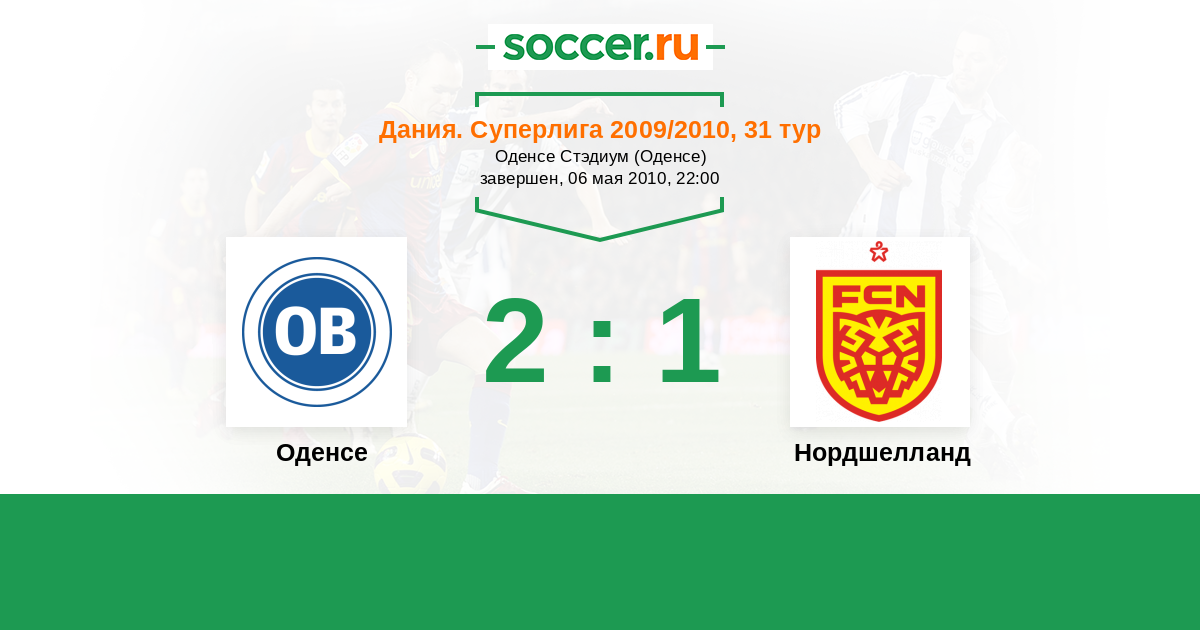Дания. Суперлига 17.10.2009 Нордшелланд Логотип футбольный клуб Нордшелланд (Фарум) 0:2 Логотип футбольный клуб Оденсе Оденсе