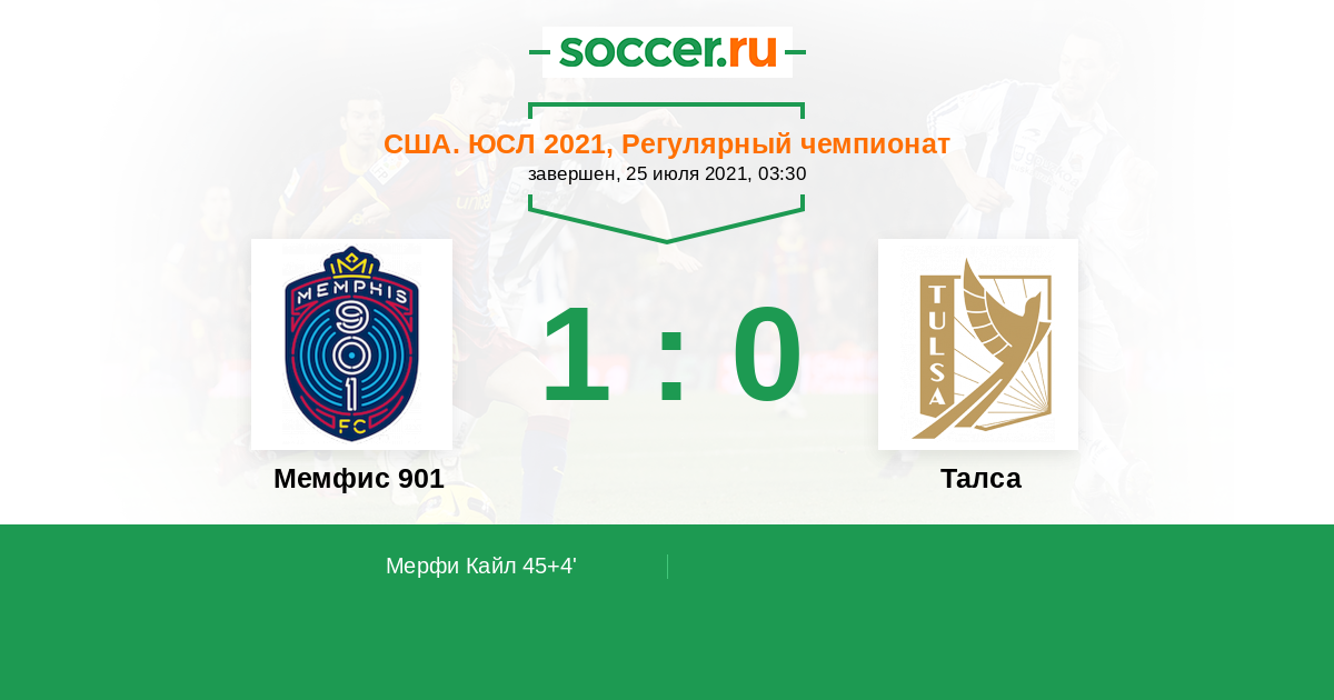 Протокол матча Мемфис 901 против Талса