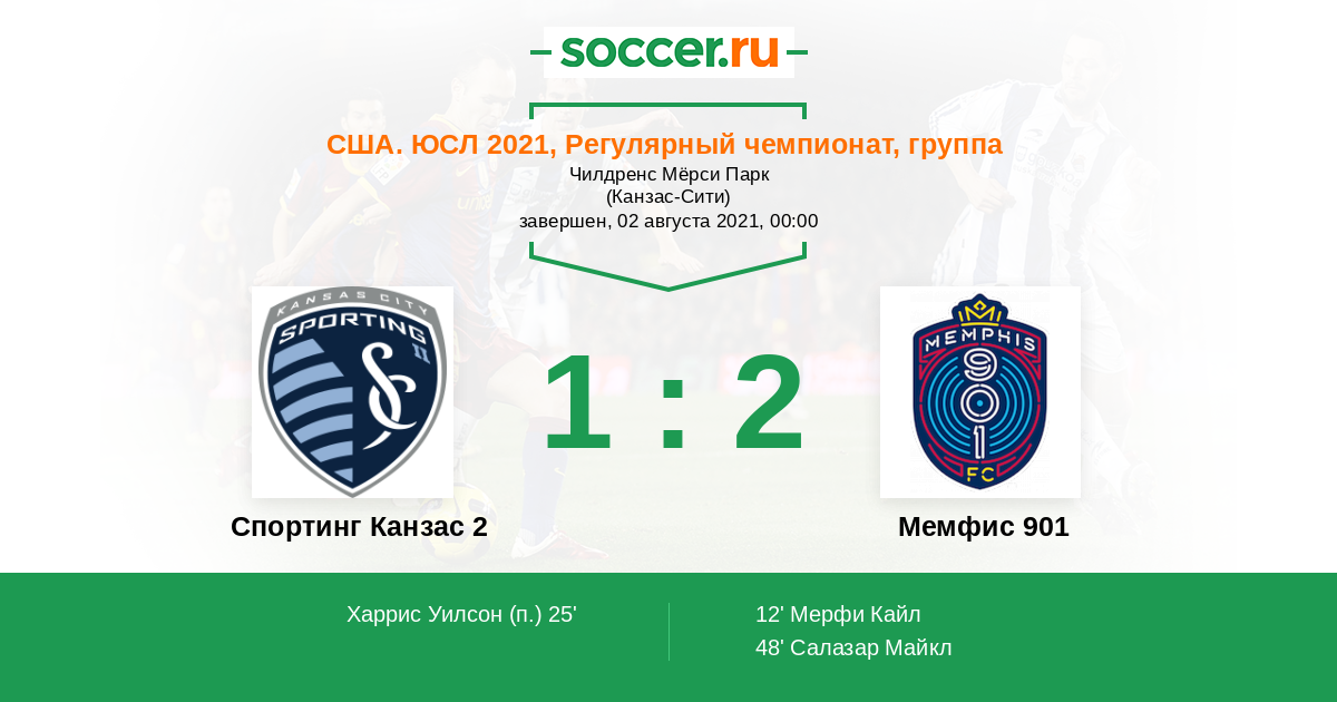 Протокол матча Спортинг Канзас 2 против Мемфис 901