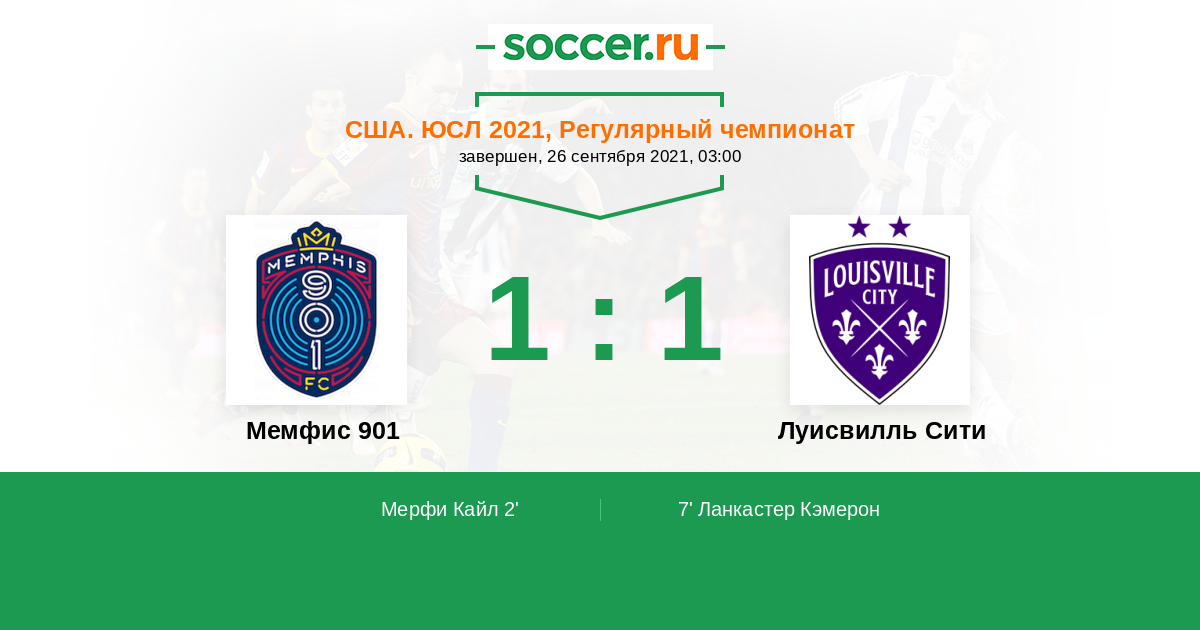 Протокол матча Мемфис 901 против Луисвилль Сити
