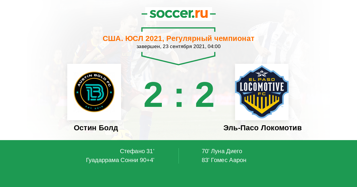 Протокол матча Остин Болд против Эль-Пасо Локомотив