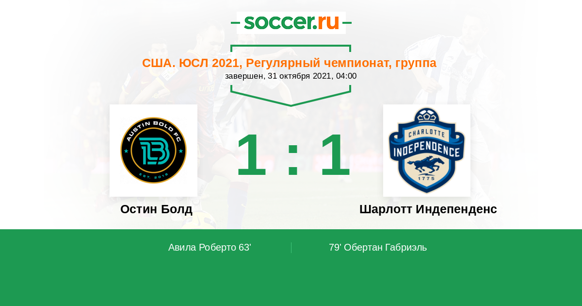 Протокол матча Остин Болд против Шарлотт Индепенденс