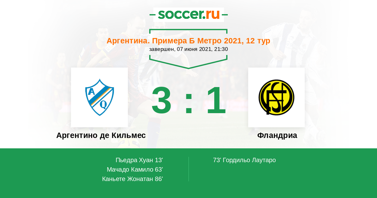 Протокол матча Аргентино де Кильмес против Фландриа