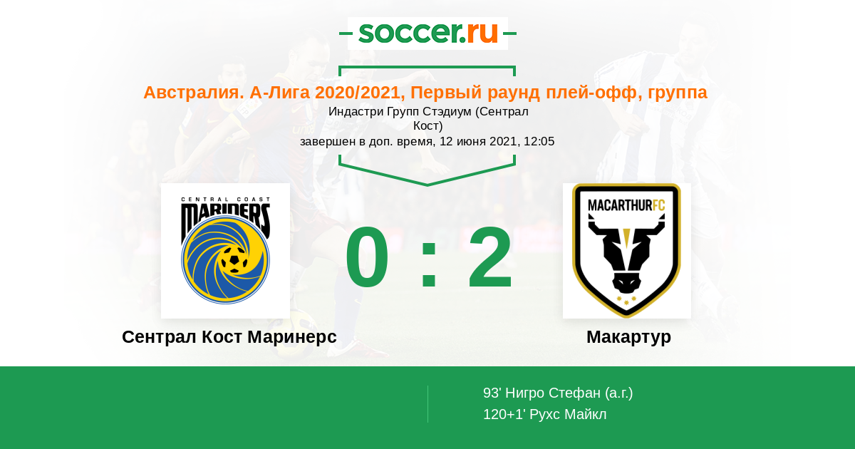 Протокол матча Сентрал Кост Маринерс против Макартур