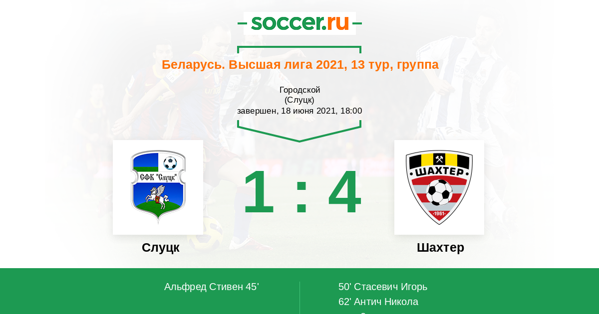 Протокол матча Слуцк против Шахтер
