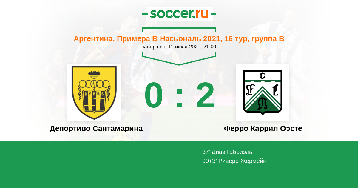 Протокол матча Депортиво Сантамарина против Ферро Каррил Оэсте