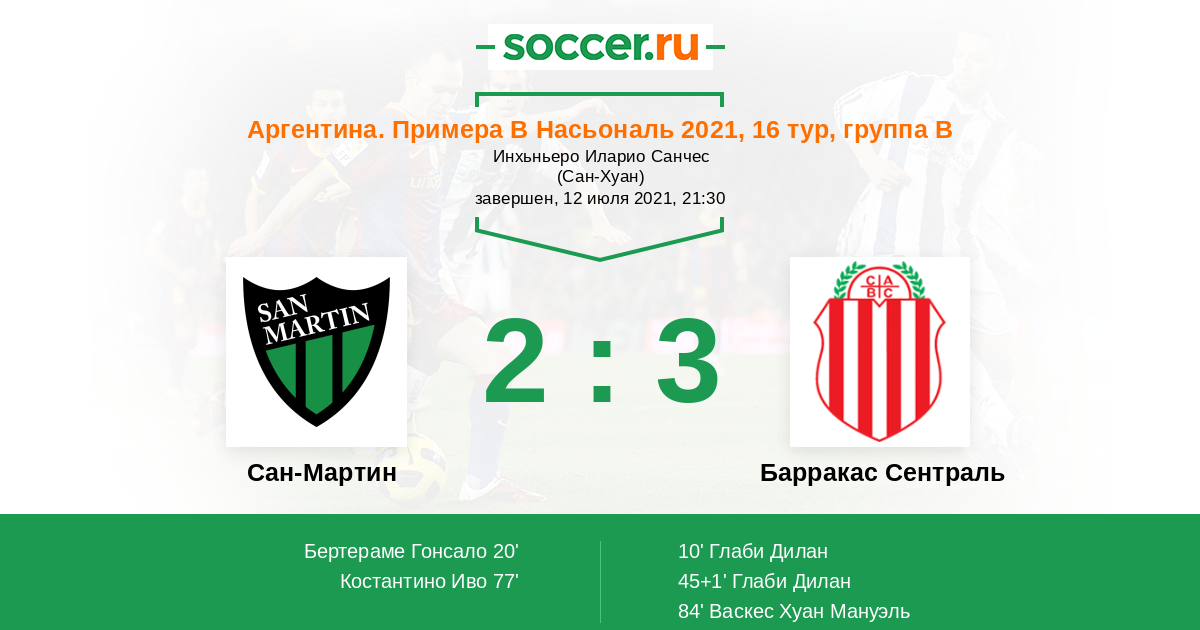 Протокол матча Сан-Мартин против Барракас Сентраль