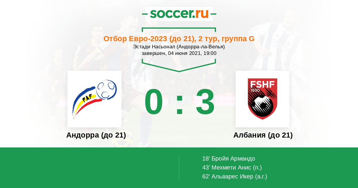 Протокол матча Андорра (до 21) против Албания (до 21)