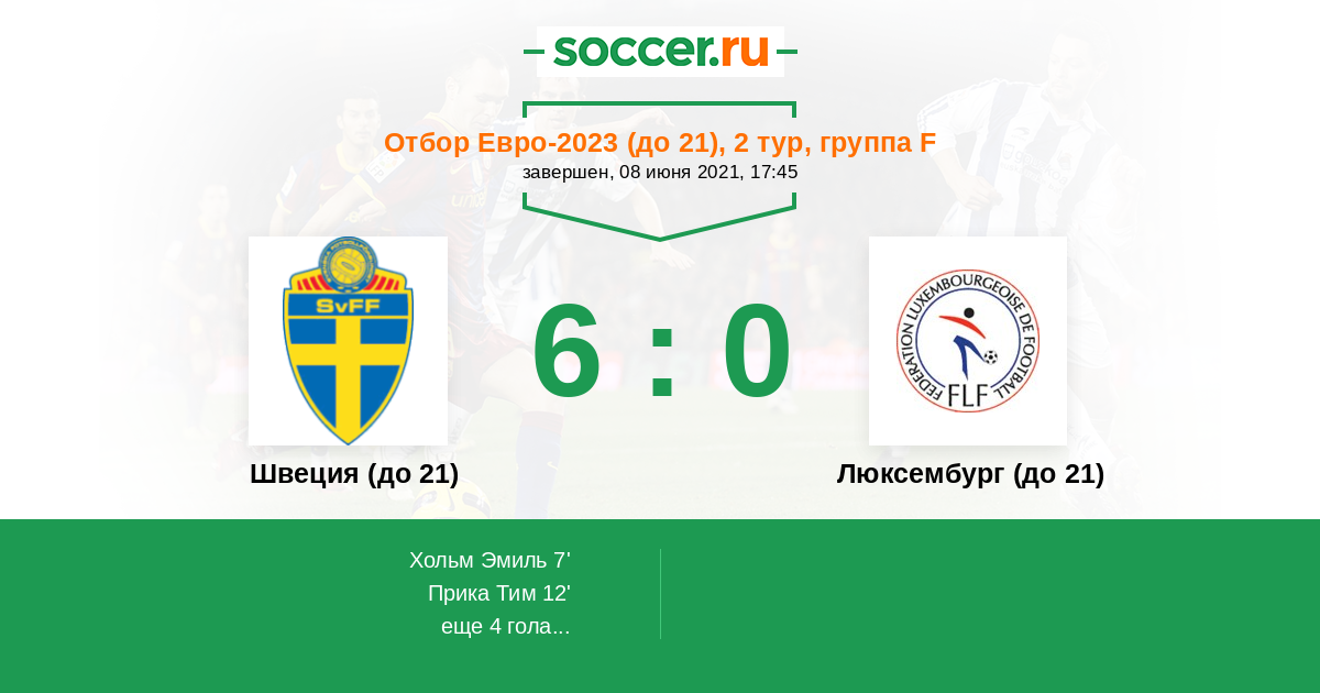 Протокол матча Швеция (до 21) против Люксембург (до 21)