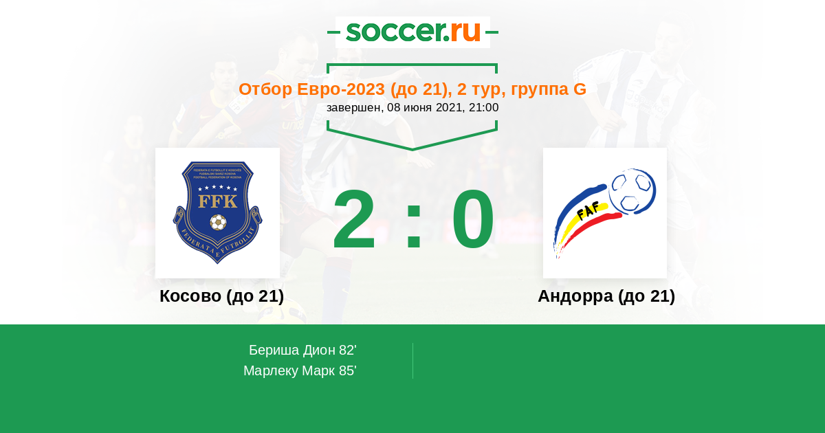 Протокол матча Косово (до 21) против Андорра (до 21)