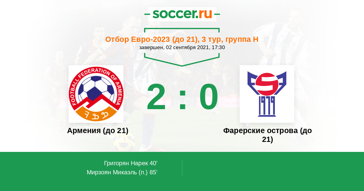 Протокол матча Армения (до 21) против Фарерские острова (до 21)