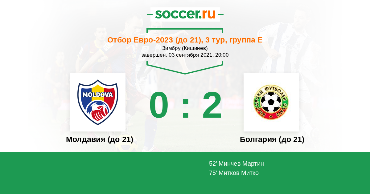Протокол матча Молдавия (до 21) против Болгария (до 21)