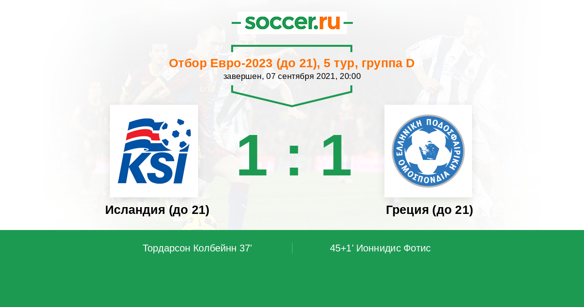 Протокол матча Исландия (до 21) против Греция (до 21)