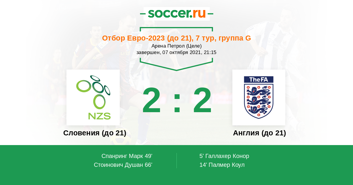 Протокол матча Словения (до 21) против Англия (до 21)