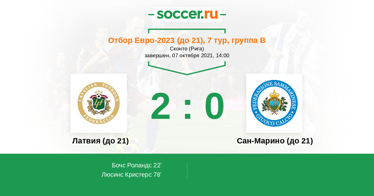 Протокол матча Латвия (до 21) против Сан-Марино (до 21)