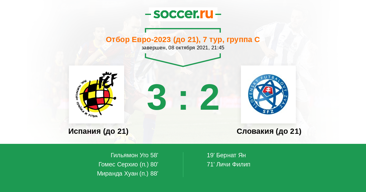 Протокол матча Испания (до 21) против Словакия (до 21)