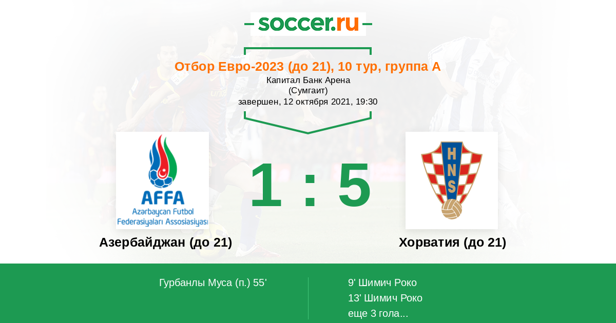 Протокол матча Азербайджан (до 21) против Хорватия (до 21)