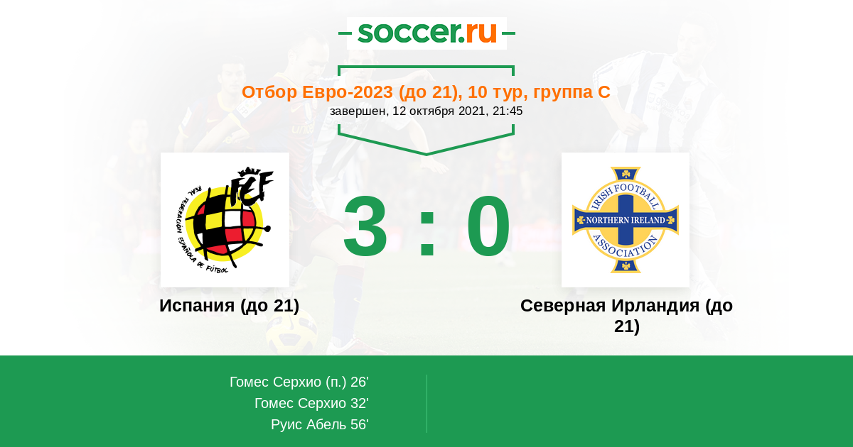 Протокол матча Испания (до 21) против Северная Ирландия (до 21)