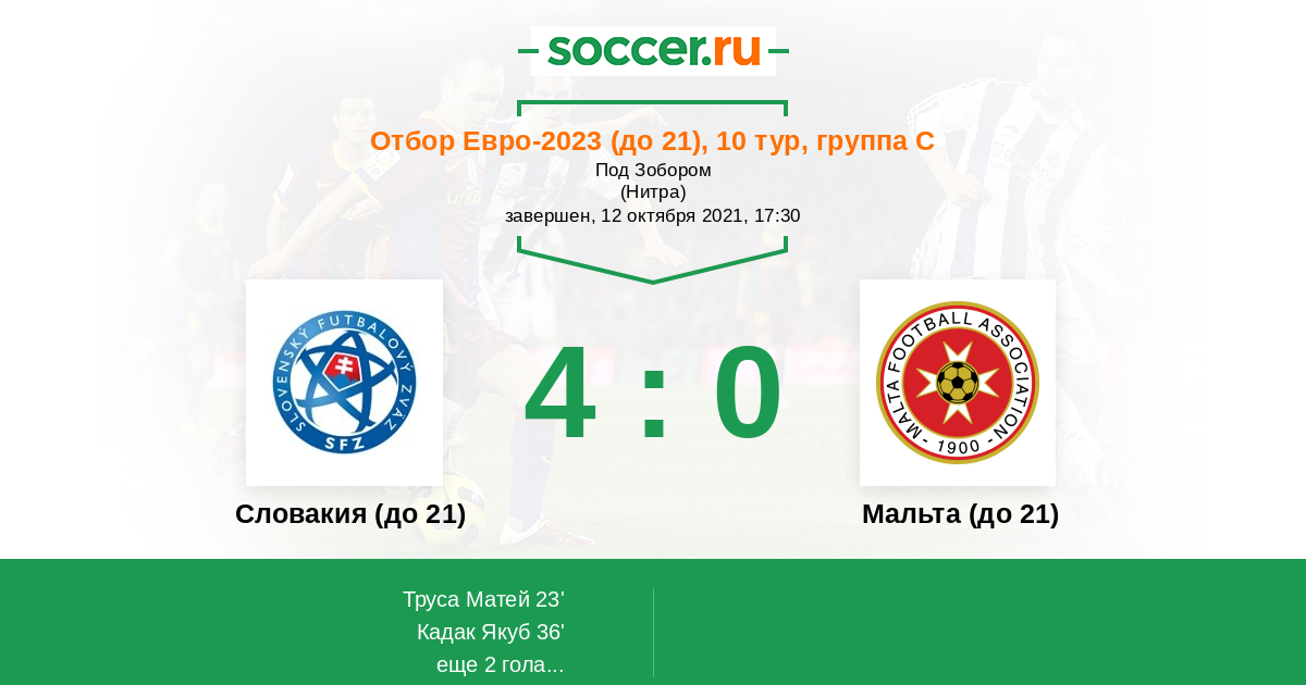 Протокол матча Словакия (до 21) против Мальта (до 21)