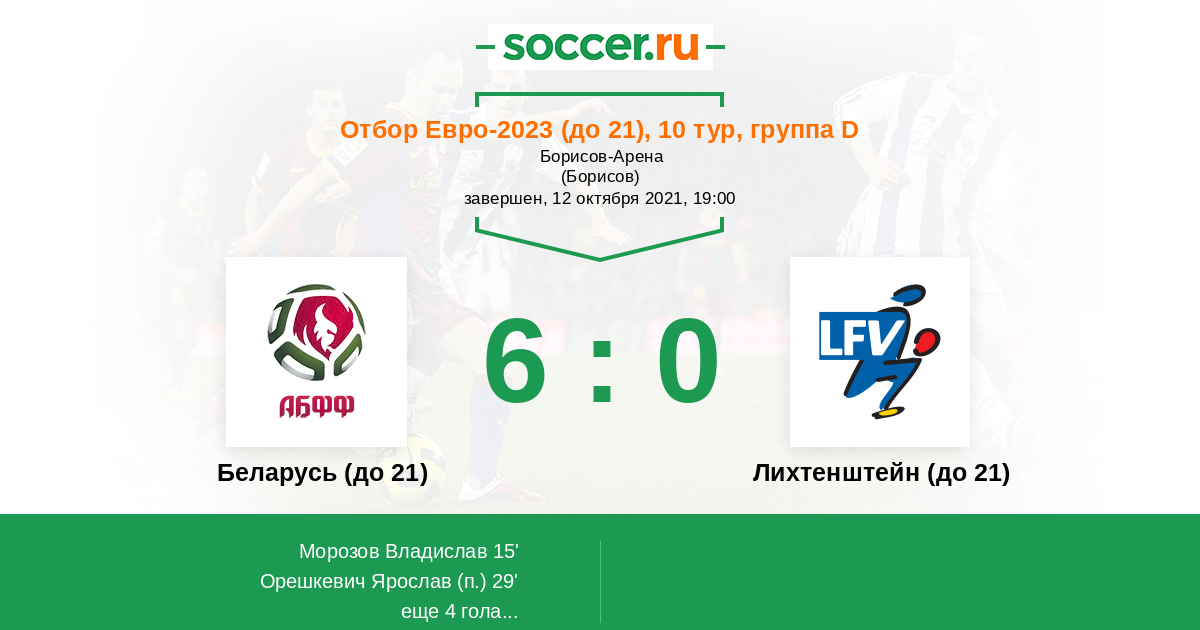 Протокол матча Беларусь (до 21) против Лихтенштейн (до 21)