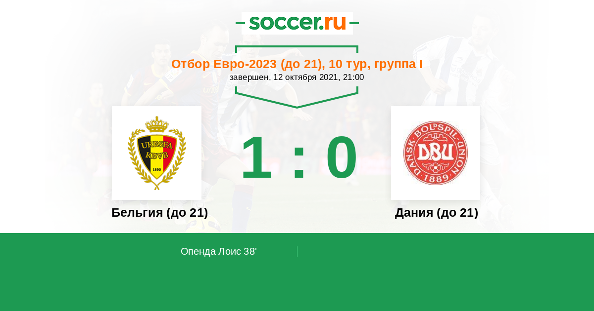 Протокол матча Бельгия (до 21) против Дания (до 21)