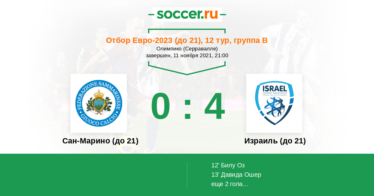 Протокол матча Сан-Марино (до 21) против Израиль (до 21)