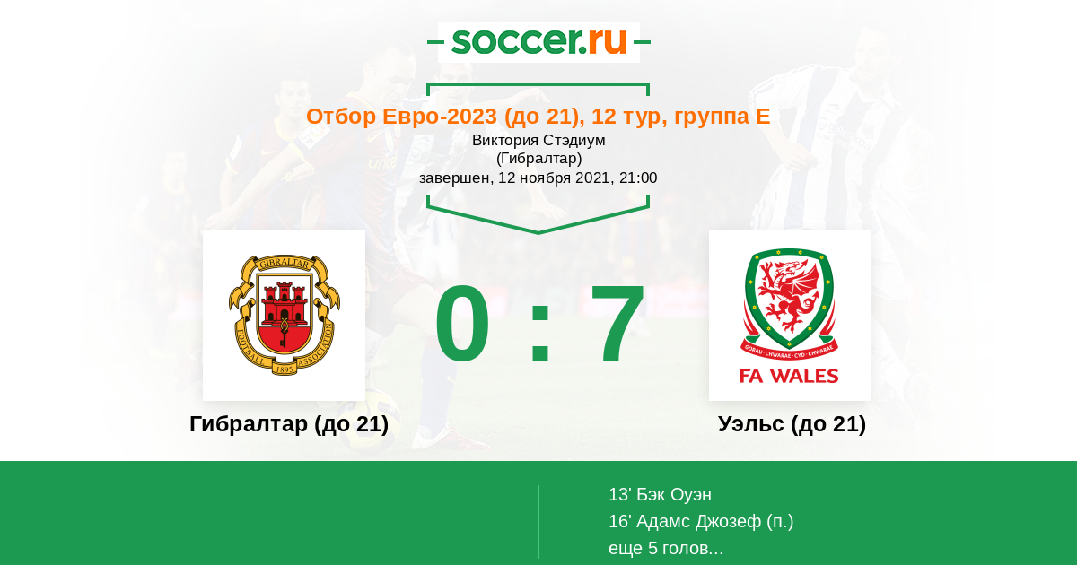 Протокол матча Гибралтар (до 21) против Уэльс (до 21)