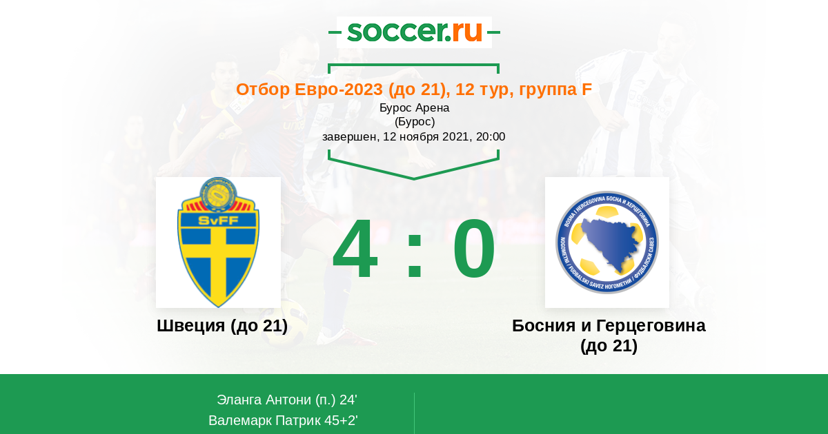 Протокол матча Швеция (до 21) против Босния и Герцеговина (до 21)