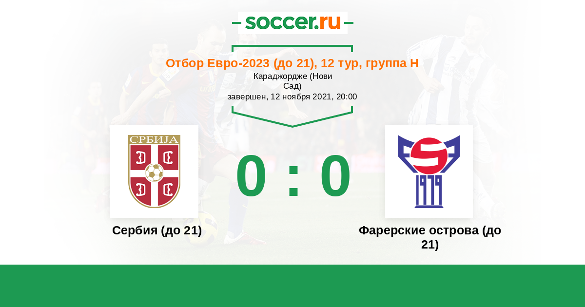 Протокол матча Сербия (до 21) против Фарерские острова (до 21)