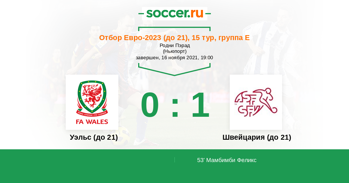 Протокол матча Уэльс (до 21) против Швейцария (до 21)