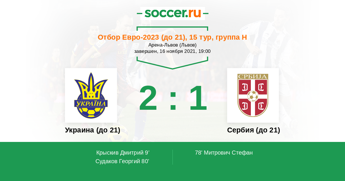 Протокол матча Украина (до 21) против Сербия (до 21)