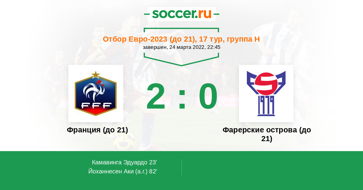 Протокол матча Франция (до 21) против Фарерские острова (до 21)