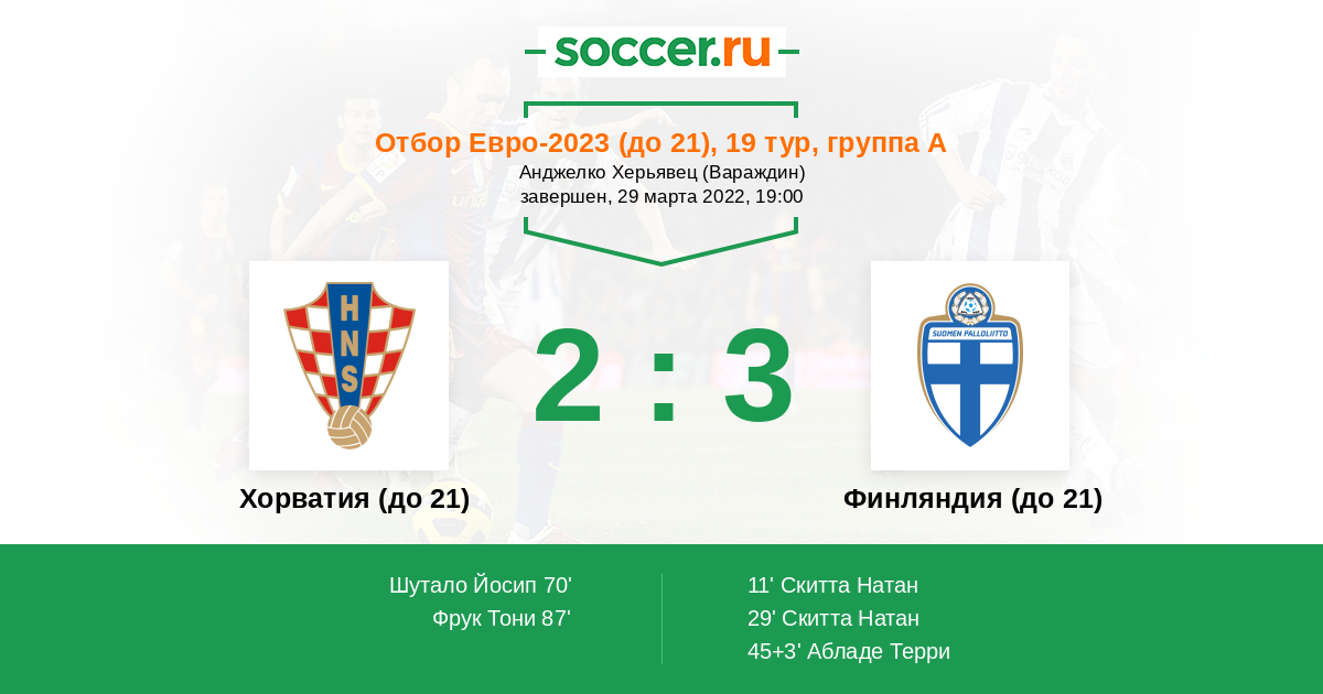 Протокол матча Хорватия (до 21) против Финляндия (до 21)