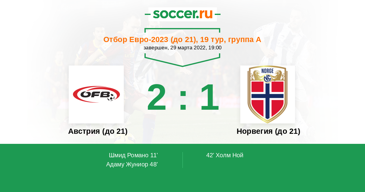 Протокол матча Австрия (до 21) против Норвегия (до 21)