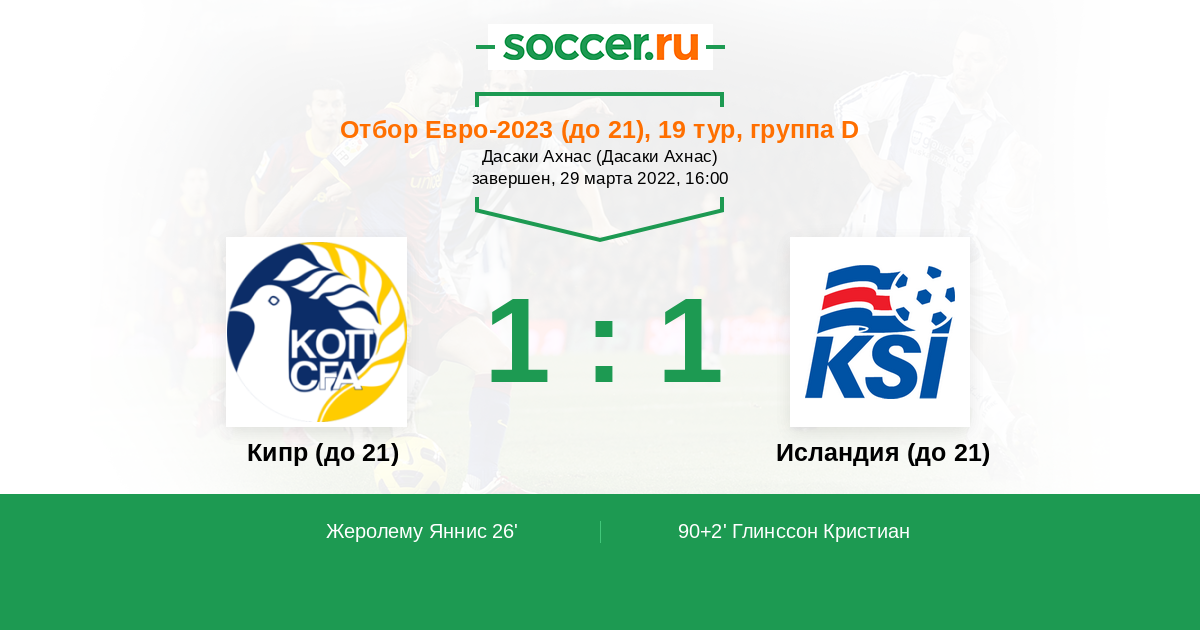 Протокол матча Кипр (до 21) против Исландия (до 21)