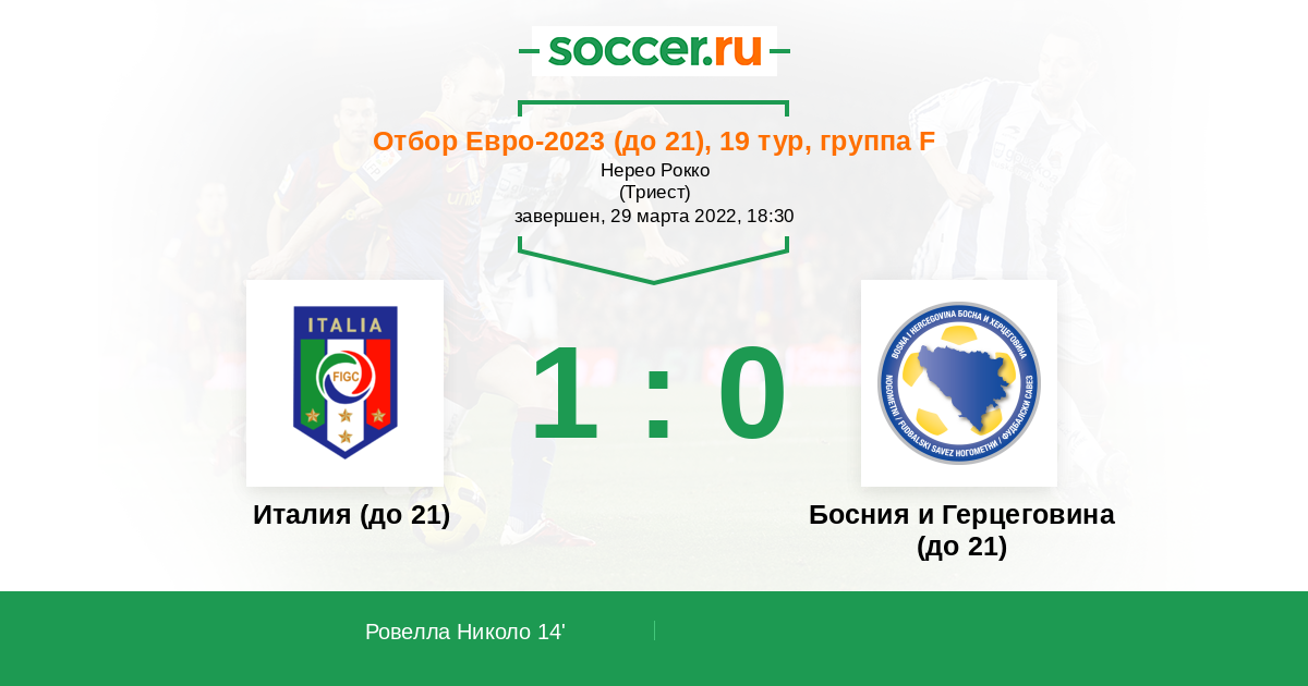 Протокол матча Италия (до 21) против Босния и Герцеговина (до 21)