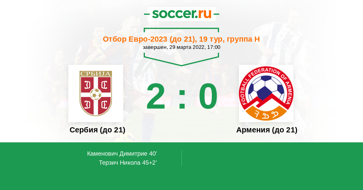 Протокол матча Сербия (до 21) против Армения (до 21)