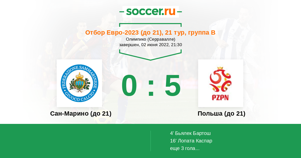 Протокол матча Сан-Марино (до 21) против Польша (до 21)