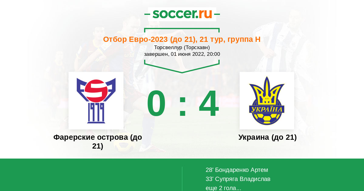 Протокол матча Фарерские острова (до 21) против Украина (до 21)