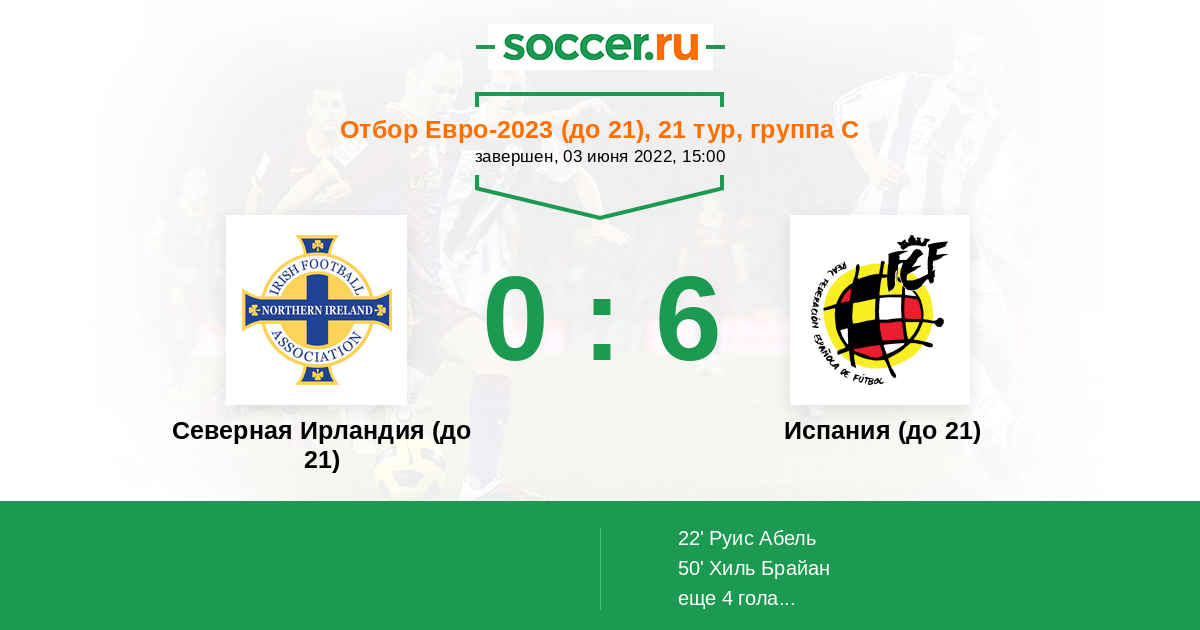 Протокол матча Северная Ирландия (до 21) против Испания (до 21)