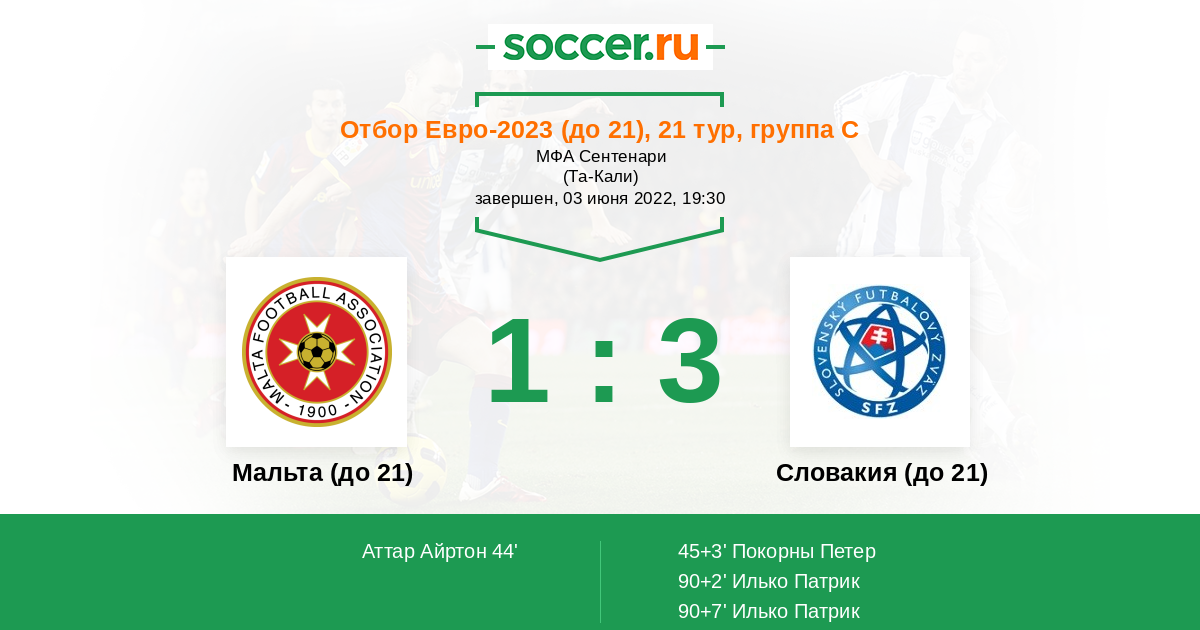 Протокол матча Мальта (до 21) против Словакия (до 21)