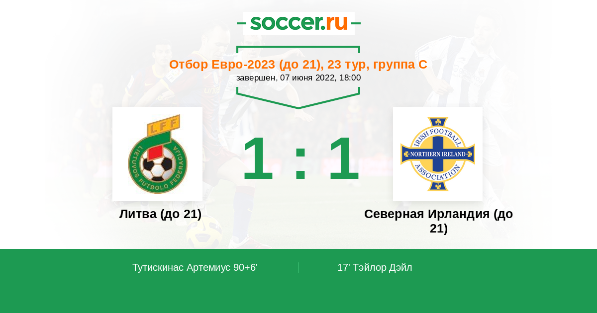 Протокол матча Литва (до 21) против Северная Ирландия (до 21)