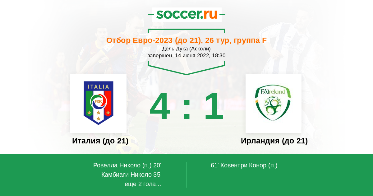 Протокол матча Италия (до 21) против Ирландия (до 21)