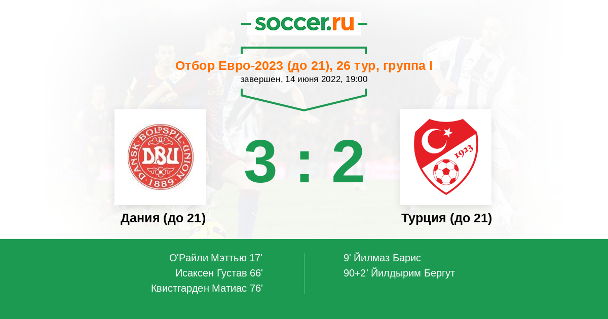 Протокол матча Дания (до 21) против Турция (до 21)
