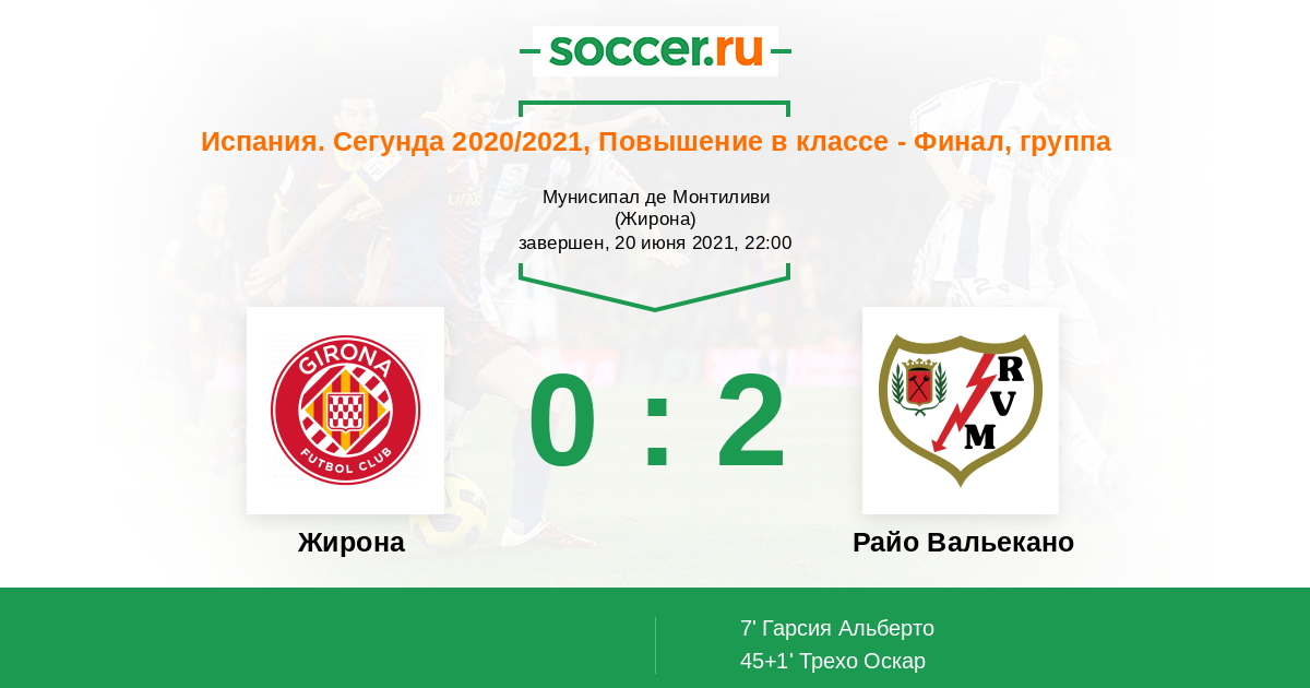 Протокол матча Жирона против Райо Вальекано